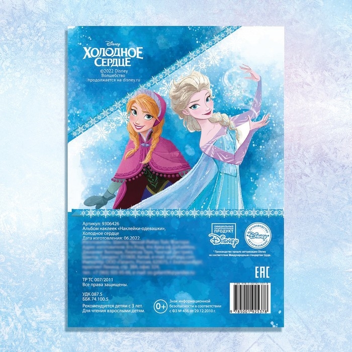 Альбом с наклейками-одевашками понравится всем поклонникам мультфильма «Холодное сердце». Ребёнок сможет менять наряды любимым героям, разыграет знакомые сюжеты из мультика или придумает собственные!