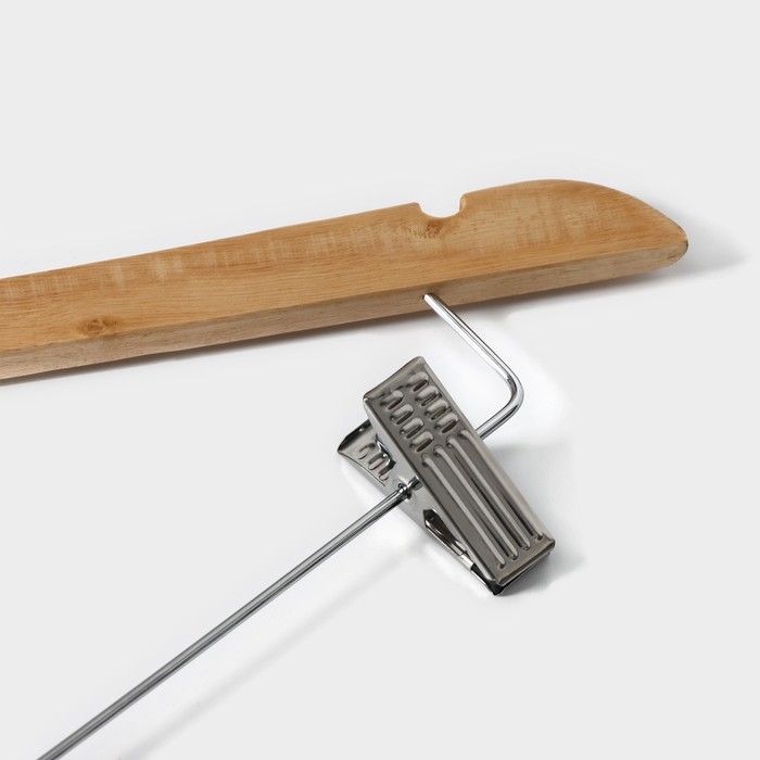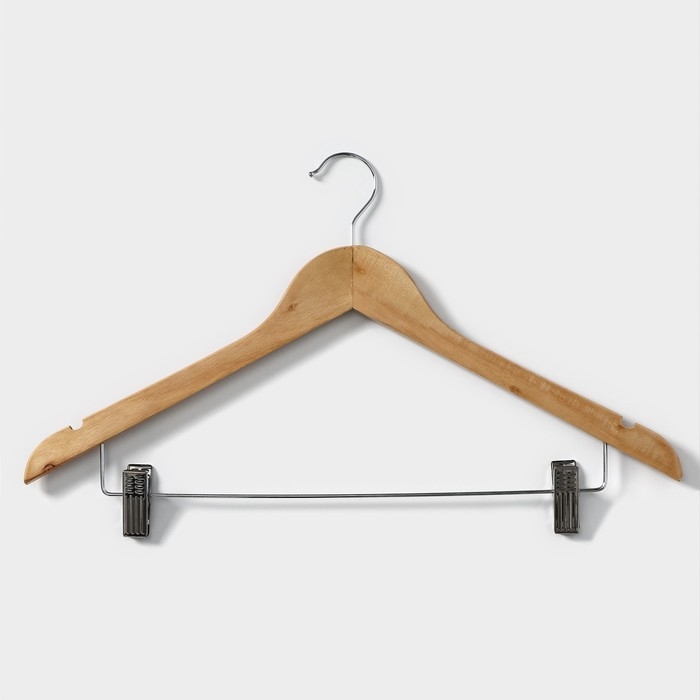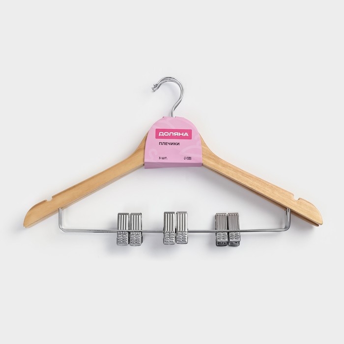 Плечики - вешалки для брюк и юбок Доляна, 45×27 см, 3 шт, с зажимами, деревянные сорт С, широкие плечики