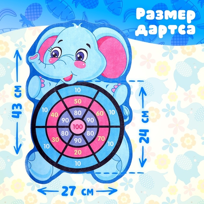 Дартс «Слоник 2», 3 шарика на липучках, крючок