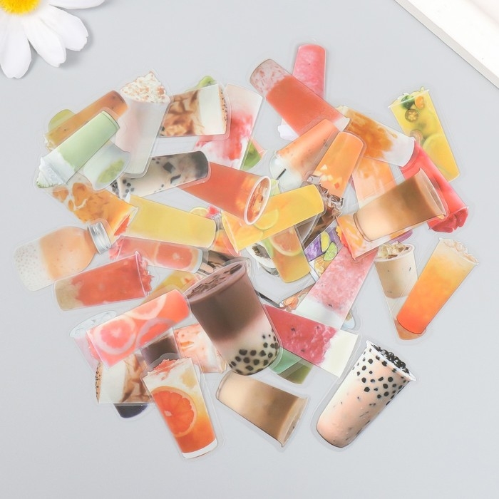 Наклейки для творчества "Молочный чай" ПВС набор 50 шт 3х2 см