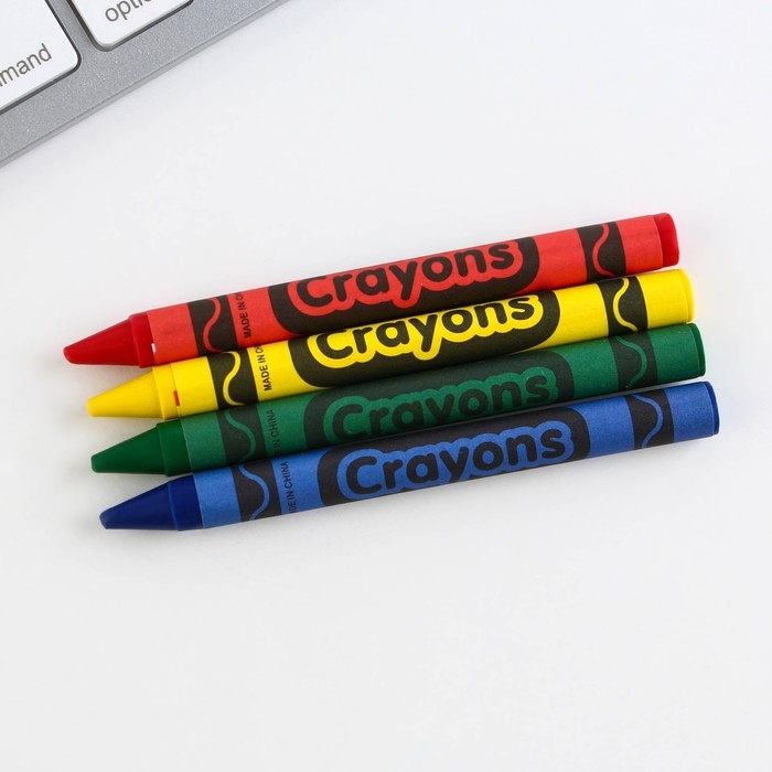 - восковые мелки 4 шт, цвет: синий, желтый, красный, зеленый .
