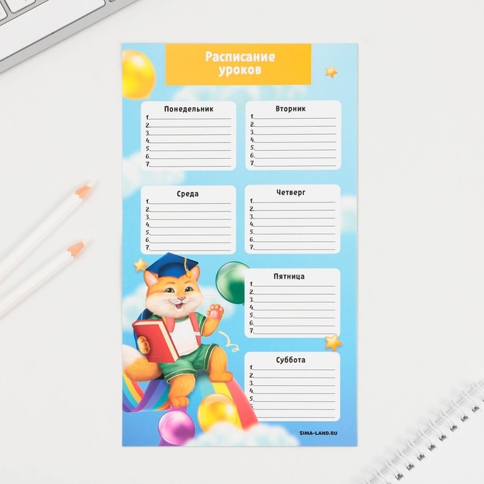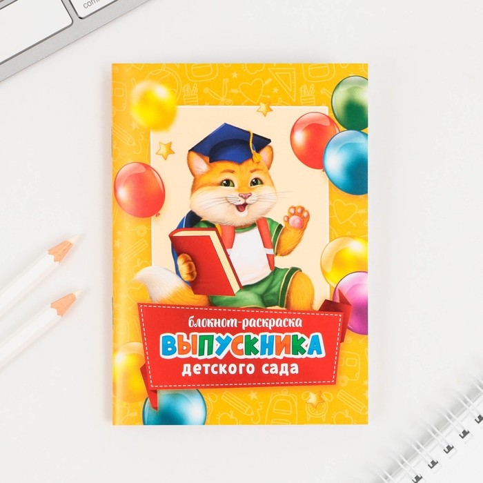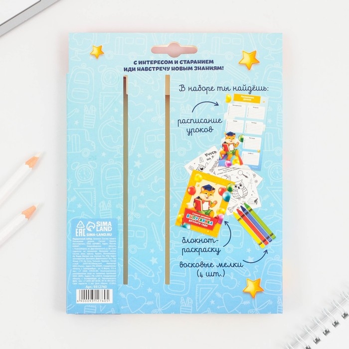 Подарочный набор на выпускной «Набор выпускника детского сада» : блокнот-раскраска, расписание уроков и восковые мелки 4 шт