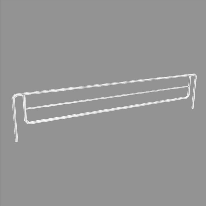 Боковое ограждение размером 400 × 50 мм предназначено для полки торгового стеллажа. Препятствует падению товаров, при этом не мешает покупателям оценивать продукцию.