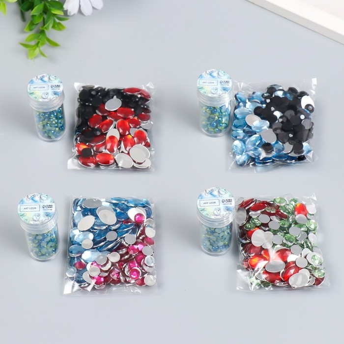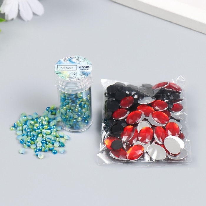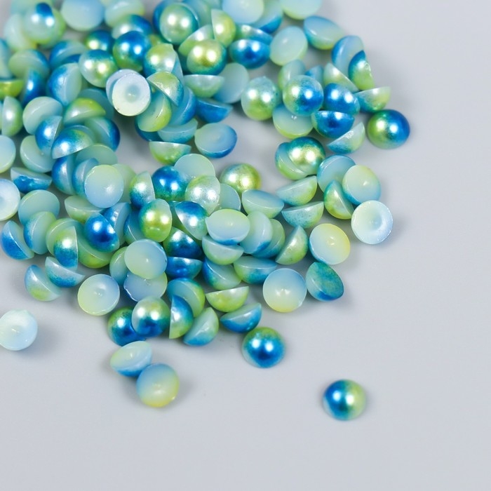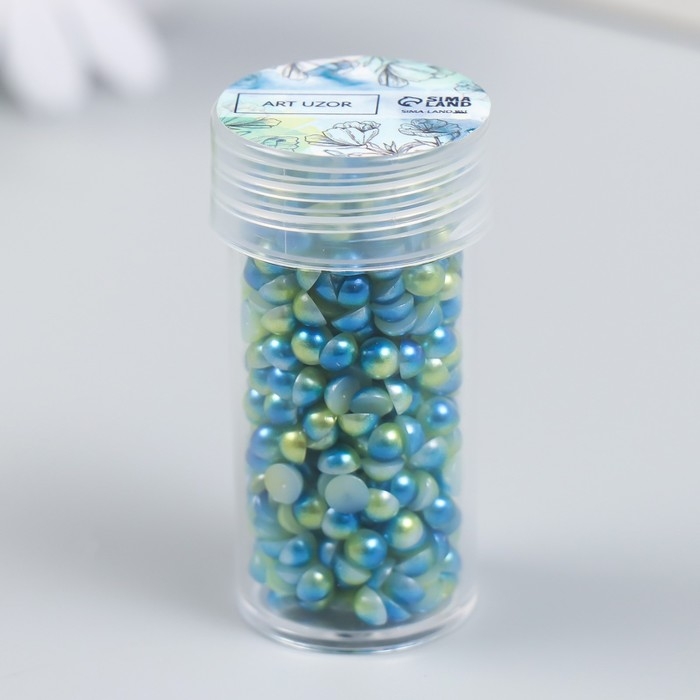 Декор "Полубусины и стразы. Градиент сине-золотой" d=4 мм 10г 200 шт 5х2,5 см МИКС