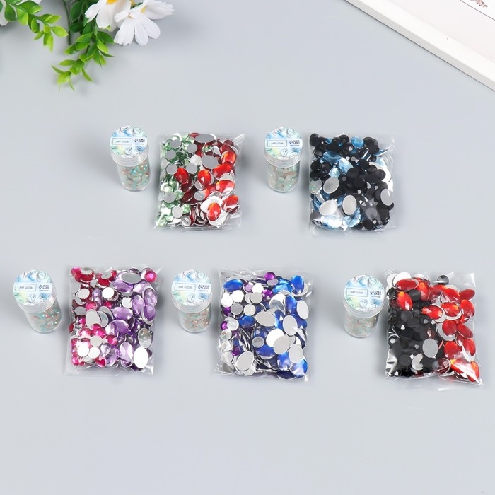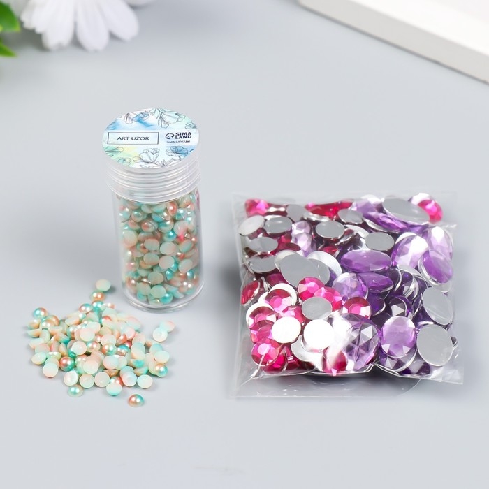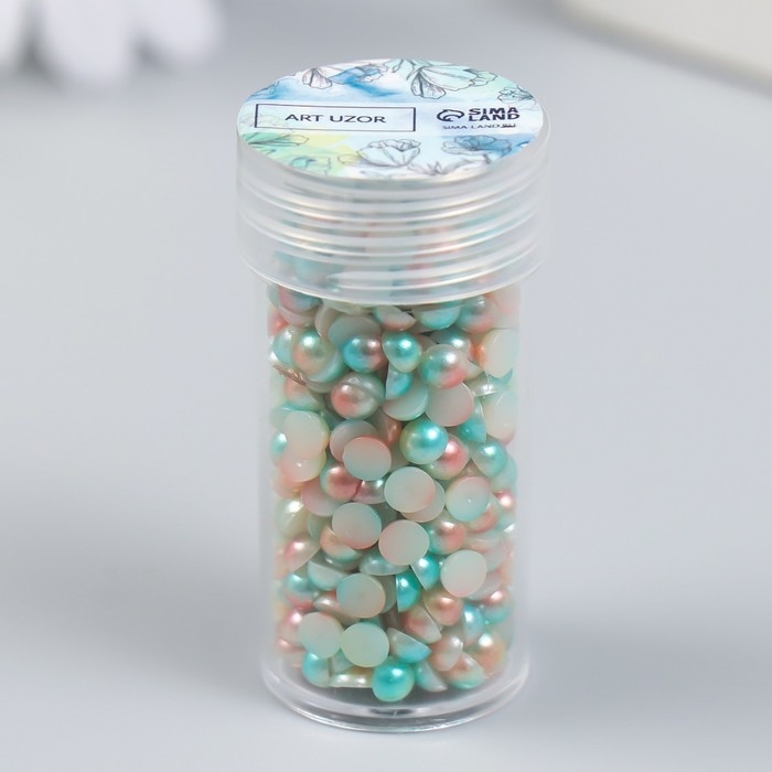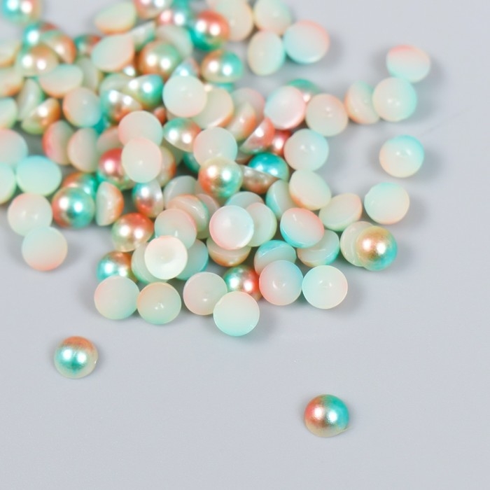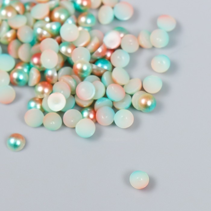 Декор "Полубусины и стразы. Градиент персиково-голубой" d=4 мм 10г 200 шт 5х2,5 см МИКС
