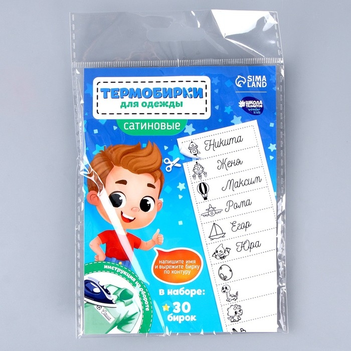 Термобирки для одежды. Набор именных термонаклеек для маркировки детских вещей «Озорной мальчик», 30 шт