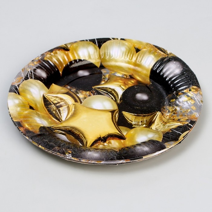 Тарелка одноразовая бумажная "Черное золото", шары", (18 см) , набор 6 шт