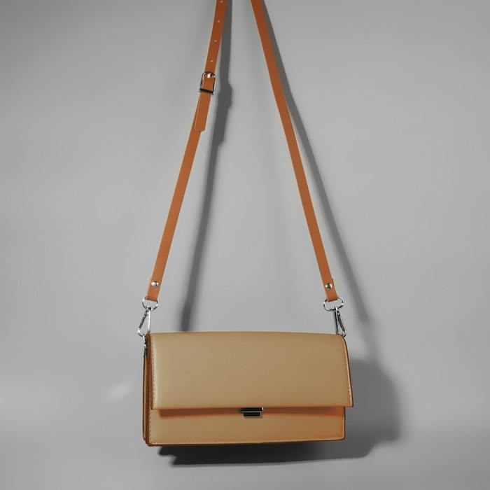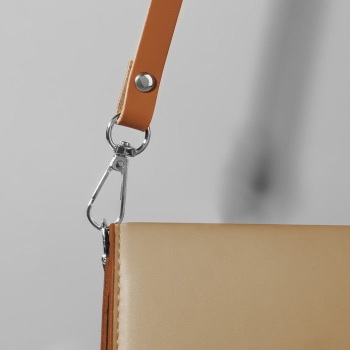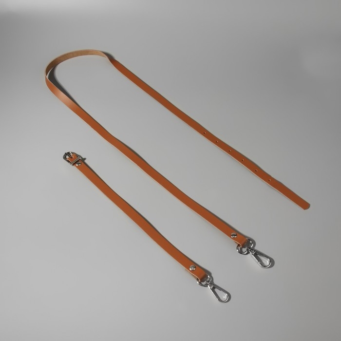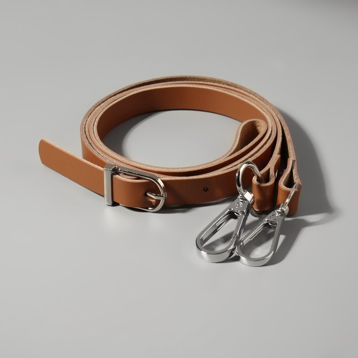 Ручка для сумки из натуральной кожи, регулируемая, с карабинами, 125 ± 2 см × 1,2 см, цвет бежевый/серебряный