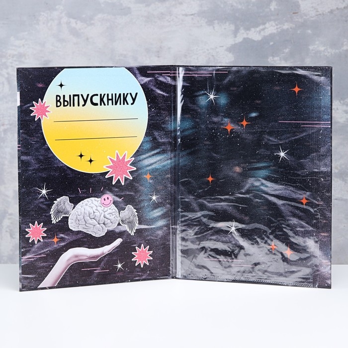 Папка с двумя файлами А4 "Выпускник" коллаж на черном фоне