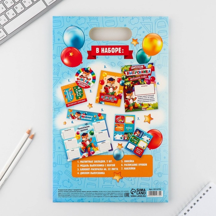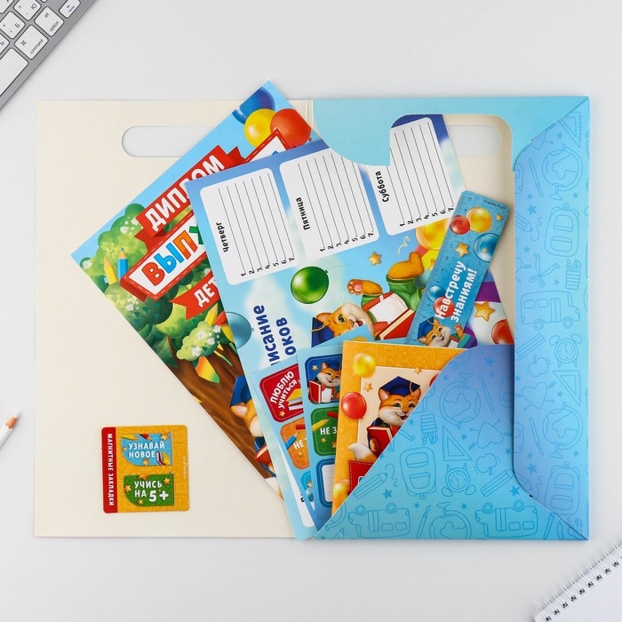 Блокнот, Диплом, Закладка, Линейка, Медаль, Наклейки, Расписание