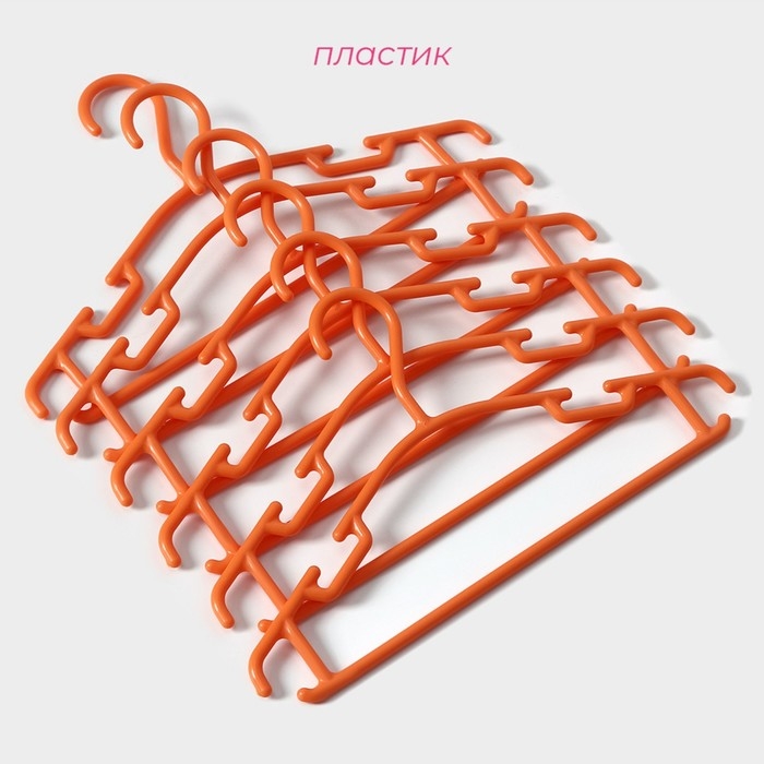 Плечики - вешалки для одежды Доляна, 26×15 см, 6 шт, детские, цвет оранжевый