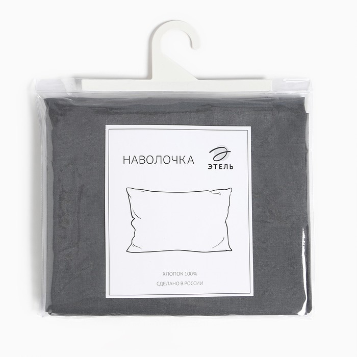 Наволочка Этель 50х70см, цвет серый, 100% хлопок, поплин, 125 г/м2