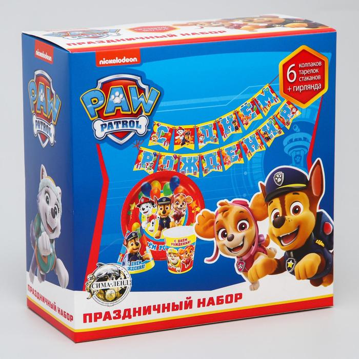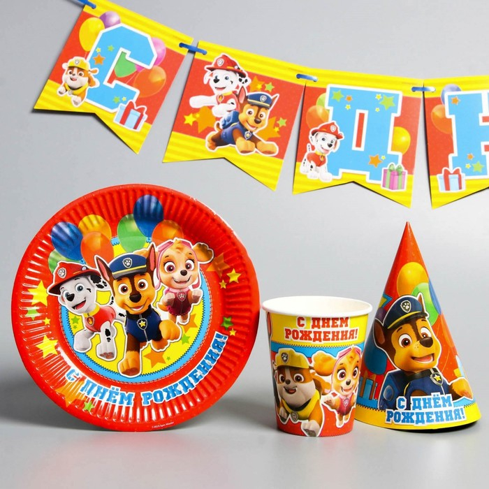 Набор бумажной посуды, на 6 персон "С днем рождения!", Щенячий патруль