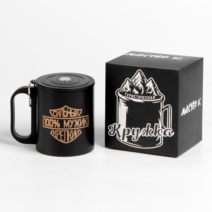 Термокружка, 180 мл, Туризм "100% мужик", сохраняет тепло 2 ч, компас
