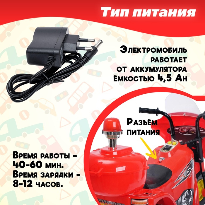 Электромобиль «Мотоцикл шерифа», цвет красный