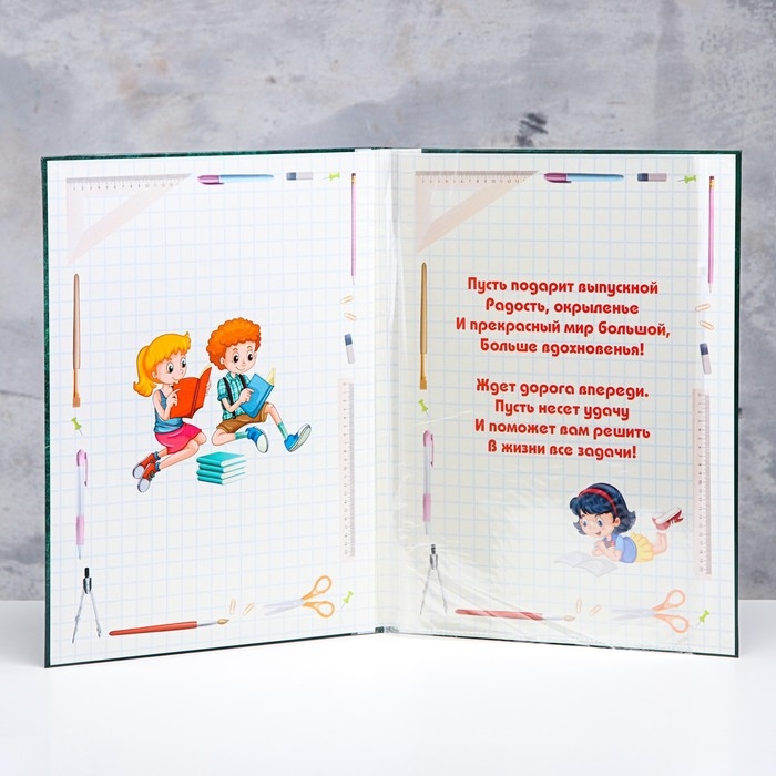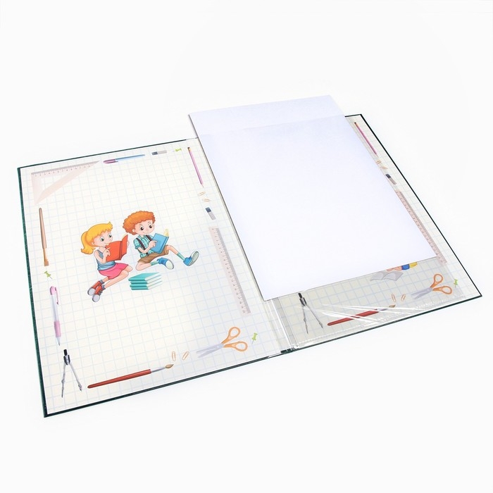 Папка с двумя файлами А4 "Диплом выпускника" зеленый фон и канцелярия