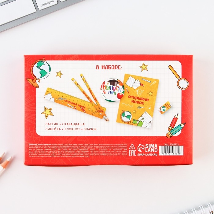 Подарочный набор на выпускной «Лучший выпускник» блокнот,ластик, 2 карандаша HB, значок,линейка