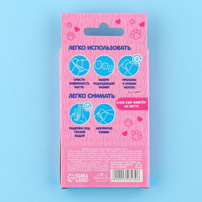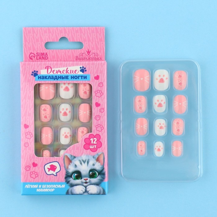 Детские накладные ногти «Сладкий стиль», 12 шт