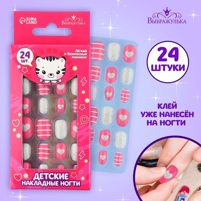 Детские накладные ногти придуманы для самых ярких и стильных девчонок! Клей уже нанесён на ногти.