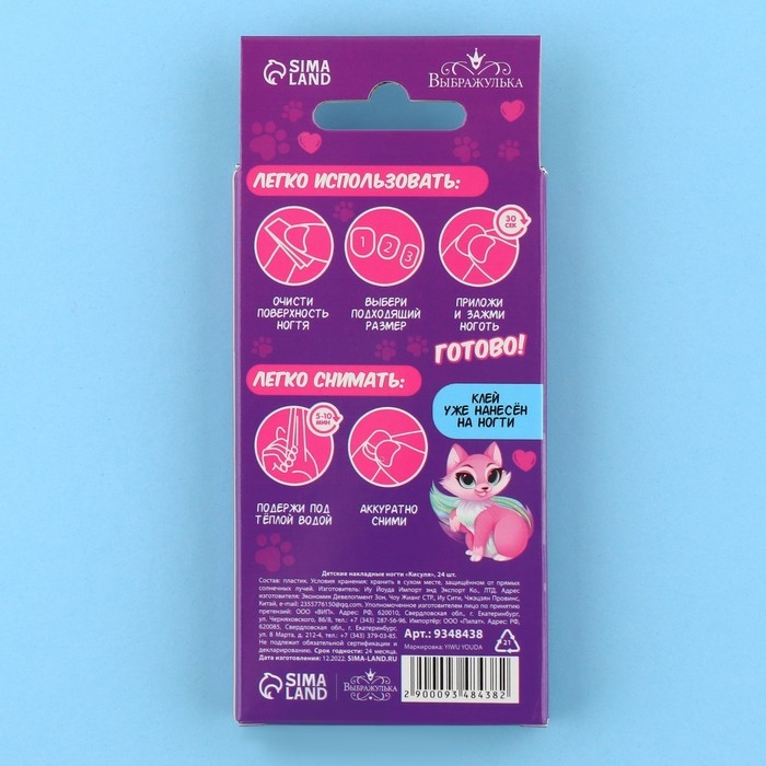 Детские накладные ногти придуманы для самых ярких и стильных девчонок! Клей уже нанесён на ногти.