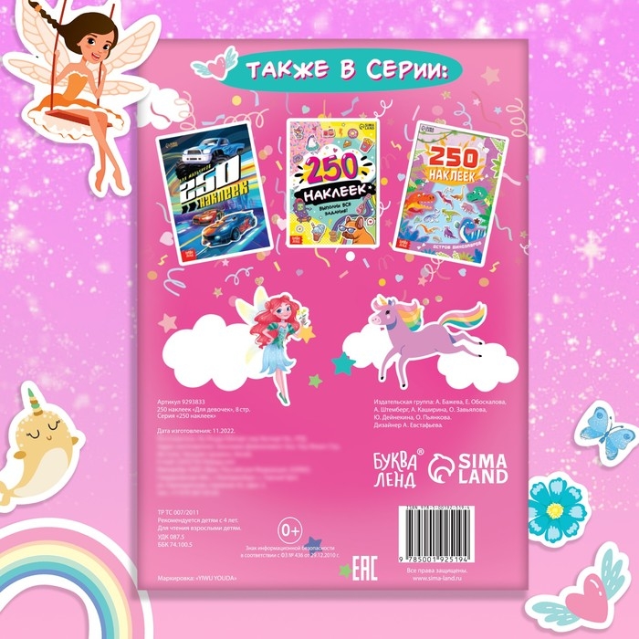 250 наклеек «Для девочек», 8 стр.