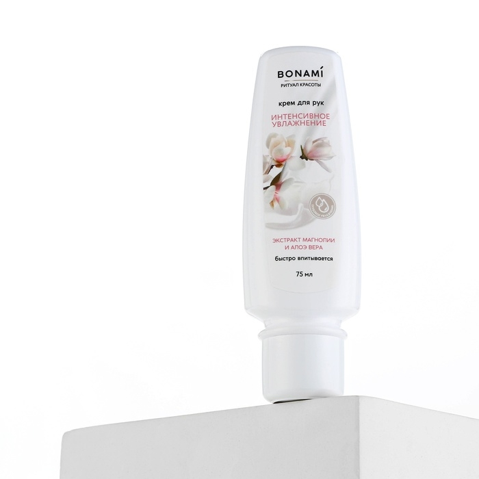 Крем для рук быстровпитывающийся с экстрактом магнолии и алоэ вера, интенсивное увлажнение, 75 мл, BONAMI