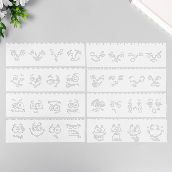 Трафарет с фигурным краем "Рожицы" набор 8 шт 18,3х5,5 см