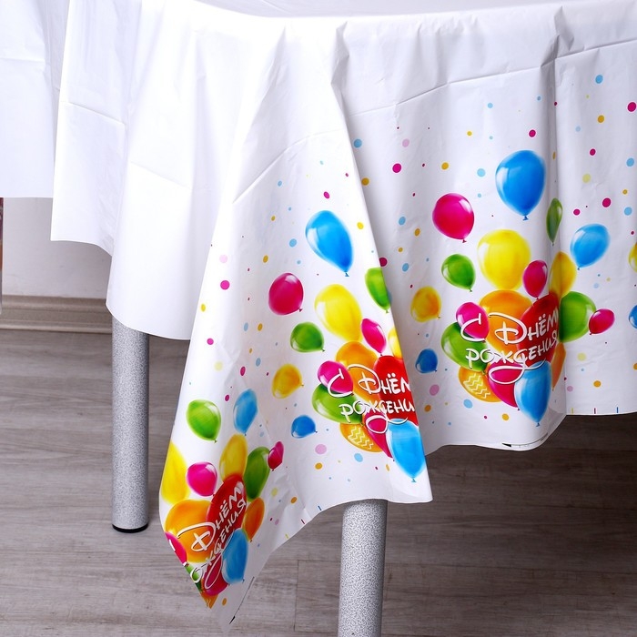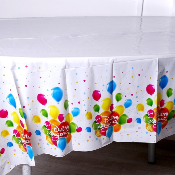 Скатерть одноразовая «С днём рождения. Шарики», 137 × 180 см