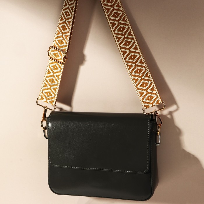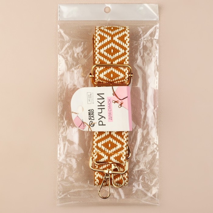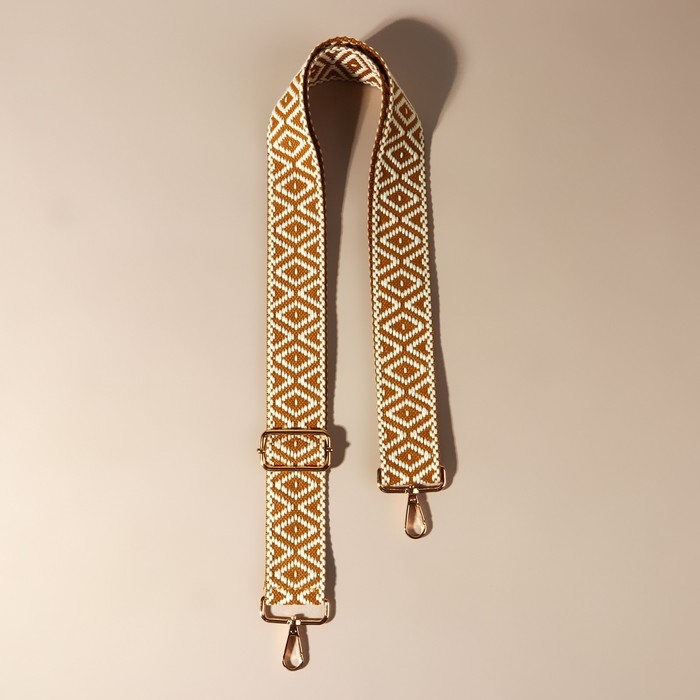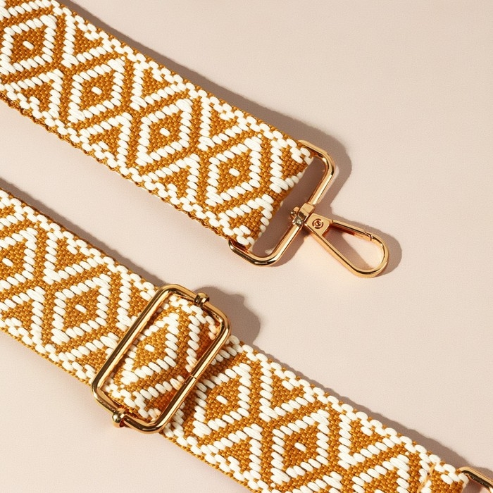 Ручка для сумки «Ромбы», стропа, 135 ± 3 × 3,8 см, цвет горчичный/белый
