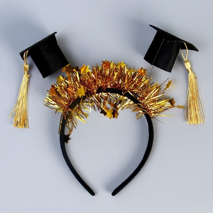 Карнавальный набор «Выпускник университета», 2 предмета: лента золотая + булавка, ободок с шапочками