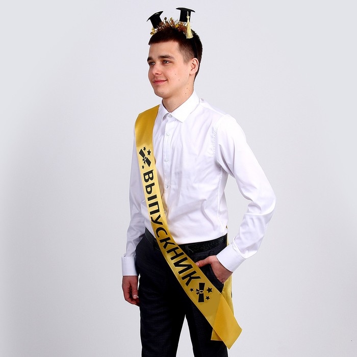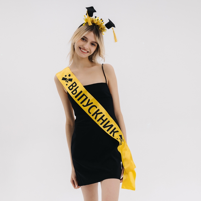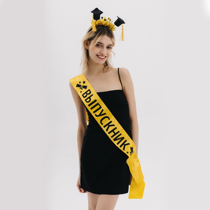 Карнавальный набор «Выпускник университета» — эффектное дополнение к выпускному костюму для студентов. Лента прекрасно подчеркнёт образ, а ободок с шапочками добавит игривости.