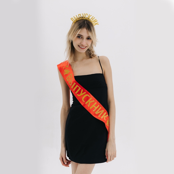 Карнавальный набор «Выпускник» — эффектное дополнение к выпускному костюму для студентов. Лента прекрасно подчеркнёт образ, а ободок с надписью добавит игривости.