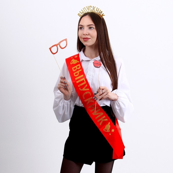 Карнавальный набор «Выпускник», 3 предмета: лента красная + булавка, ободок, фотобутафория