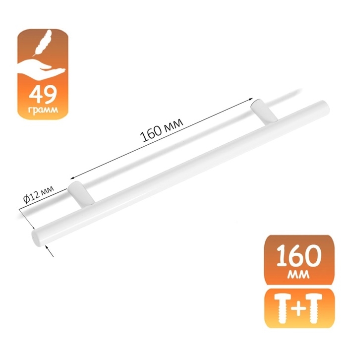 Ручка рейлинг CAPPIO FRIDA, нерж. сталь, d=12 мм, м/о 160 мм, цвет белый