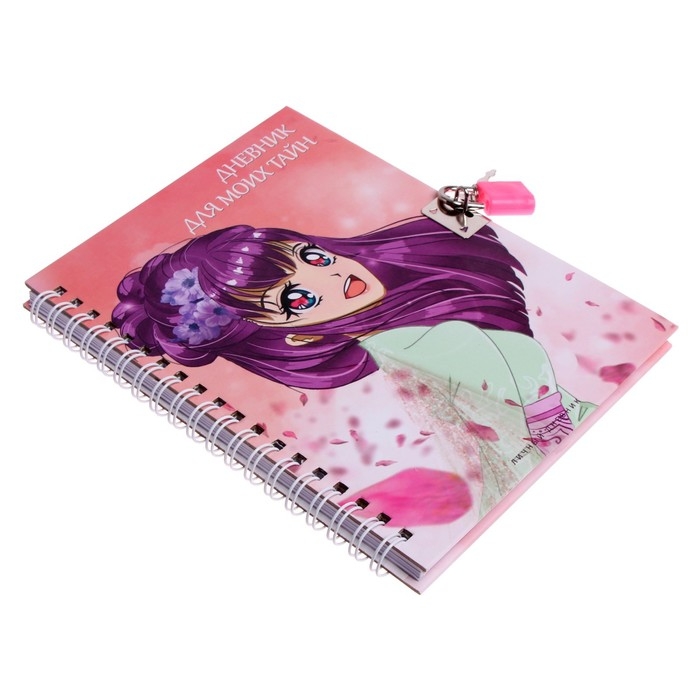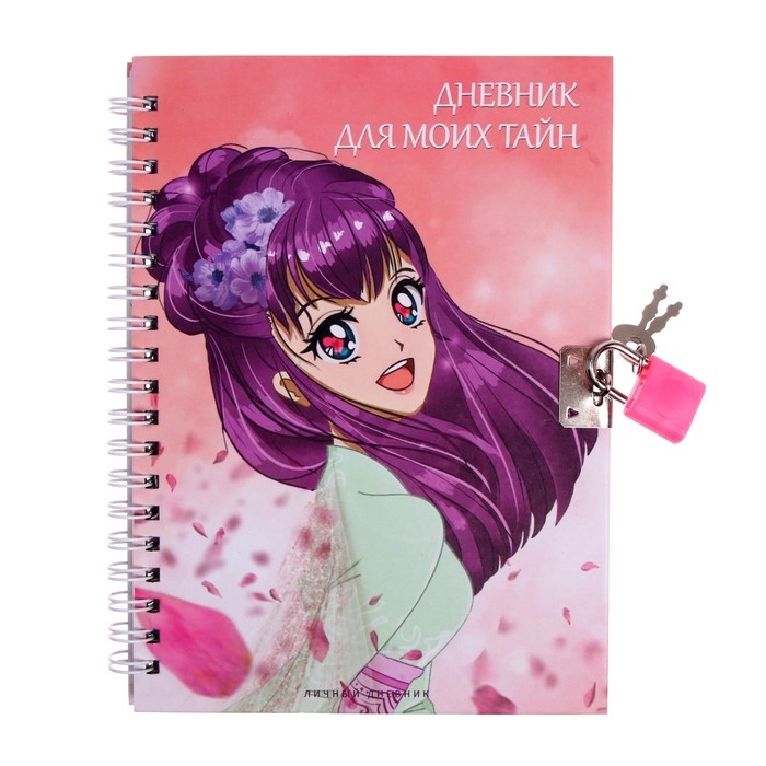 Записная книжка подарочная на замочке, А6, 45 листов, в линейку, "Аниме"