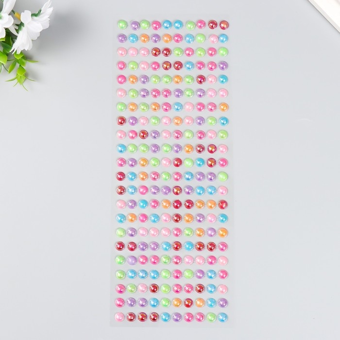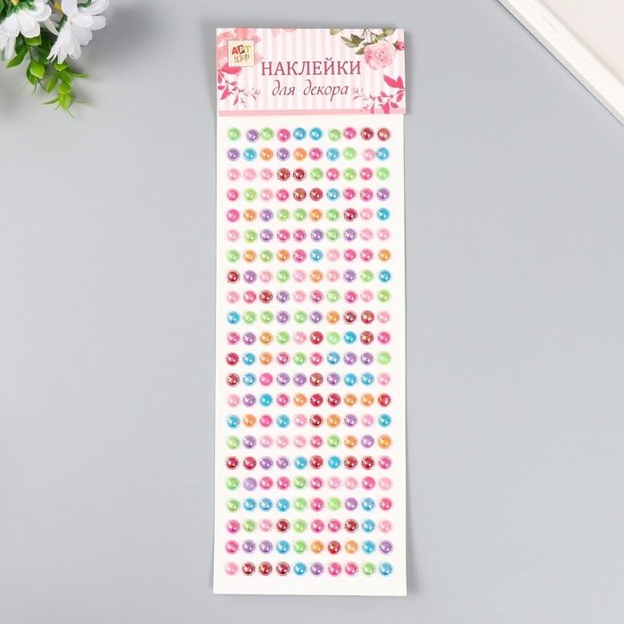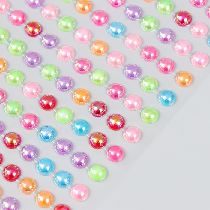 Наклейка пластик стразы "Полужемчужины перламутр" d=0,7 см МИКС 10,7х32 см
