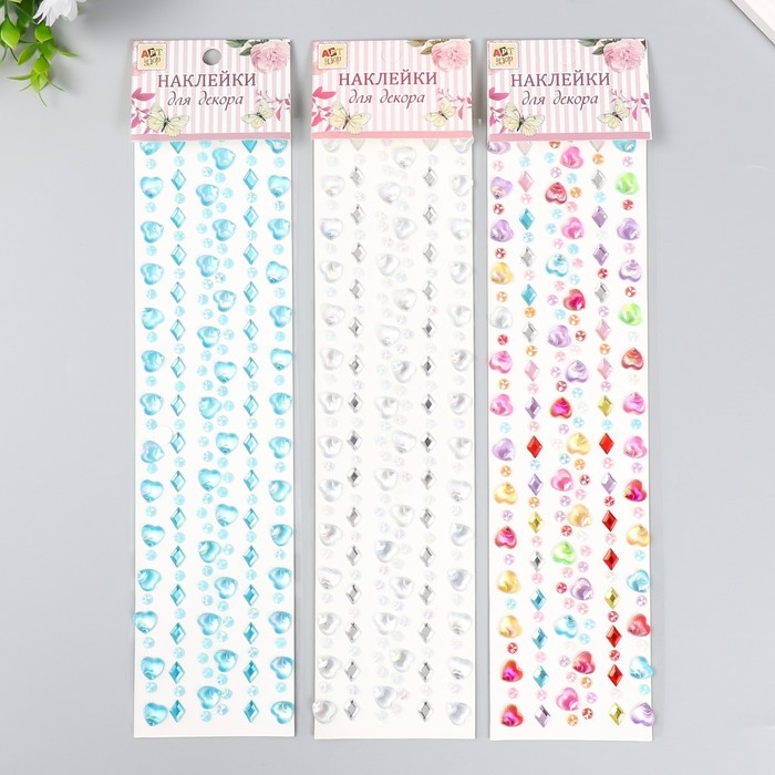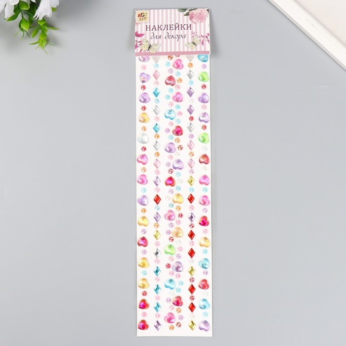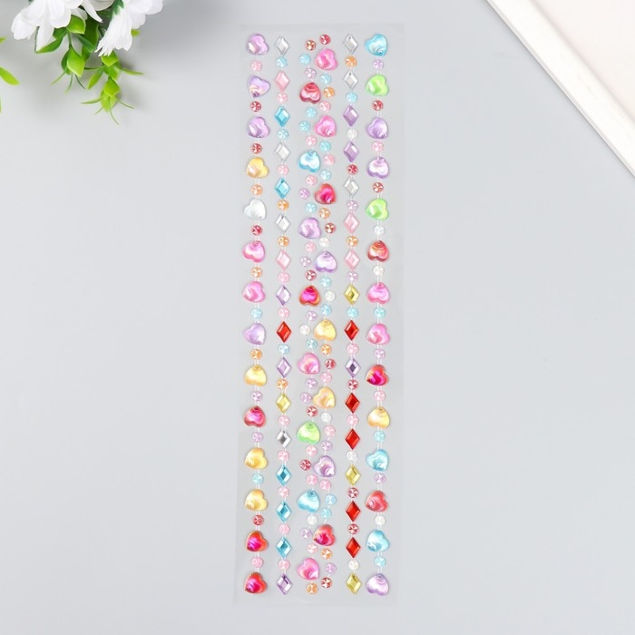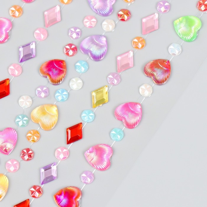 Наклейка пластик стразы "Сердца и геометрия" МИКС 7х30 см