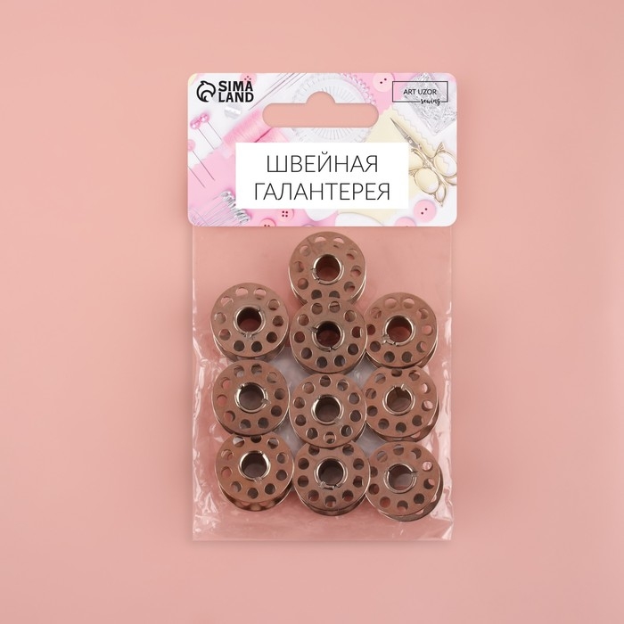 Набор металлических шпулек, d = 20 мм, 10 шт, цвет серебряный