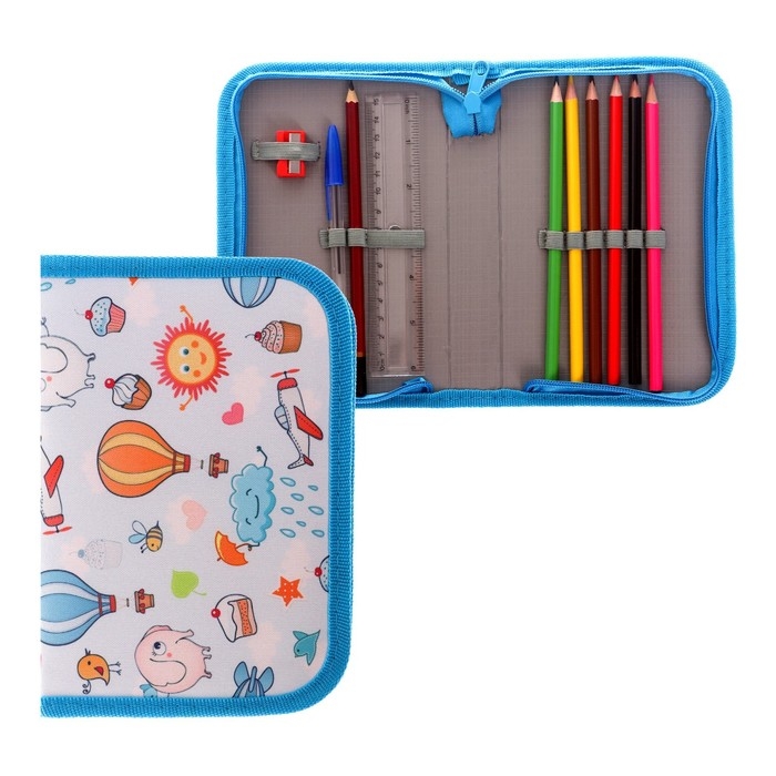 Пенал школьный "Небо", 13 х 19,5 см, на молнии, 1 секция, с наполнением, ткань