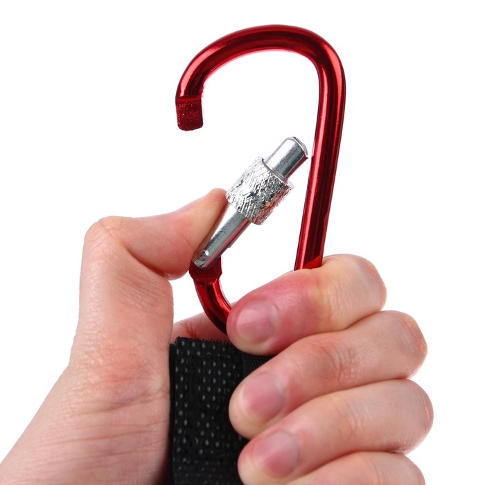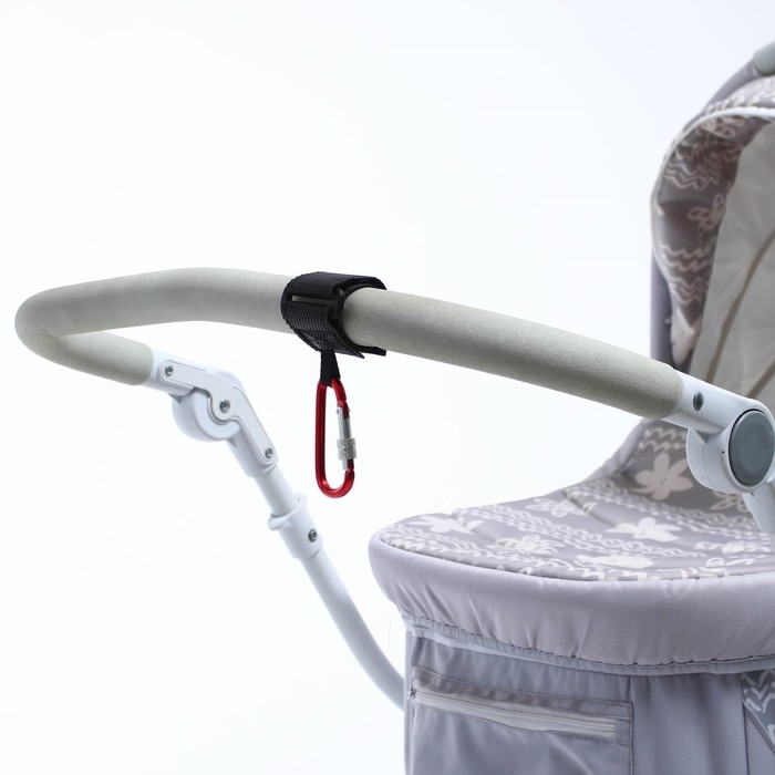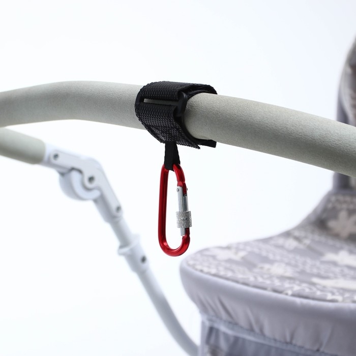 Карабин для сумок на коляску, на липучке, экокожа, цвет черный/красный