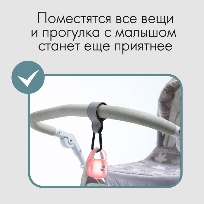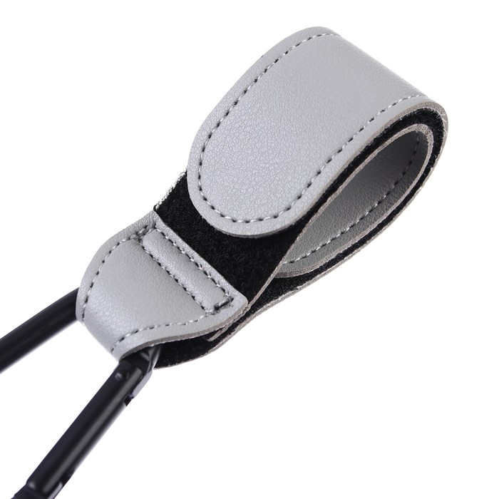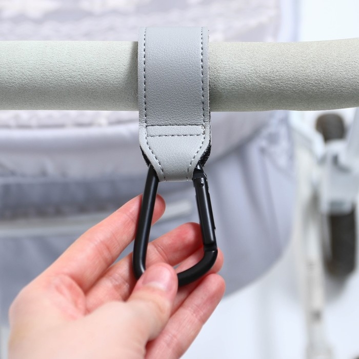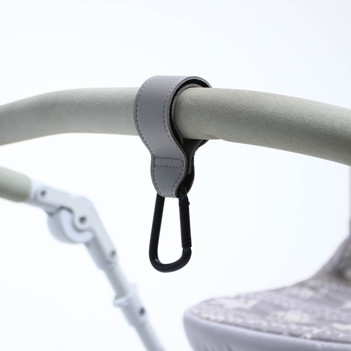 Карабин для сумок на коляску, на липучке, экокожа, цвет серый