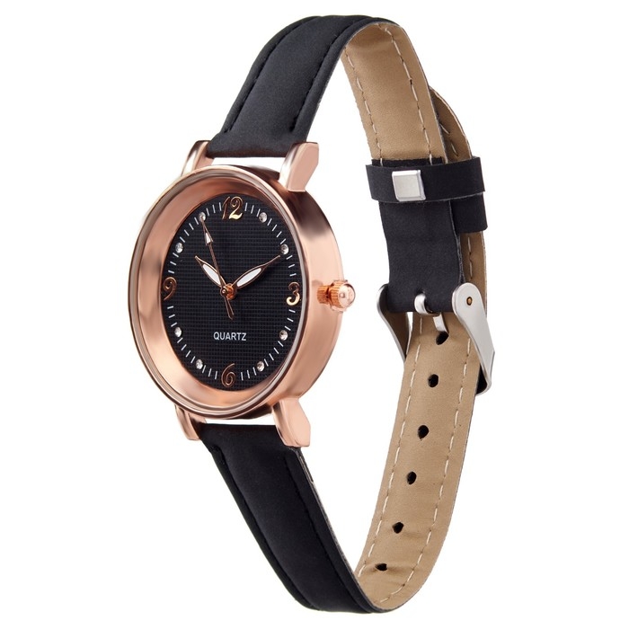 Часы наручные кварцевые женские "Пэрис", d-2.5 см, черные