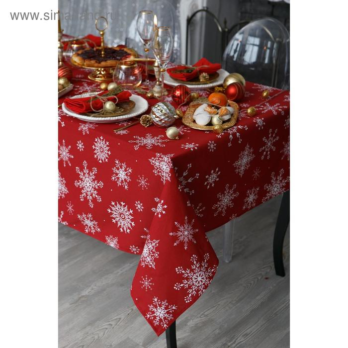 Скатерть "Доляна" Белые снежинки 180х149+/- 3см, 100% хлопок, 164 г/м2
