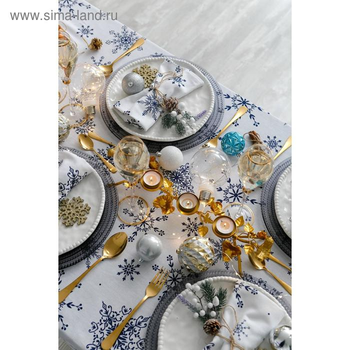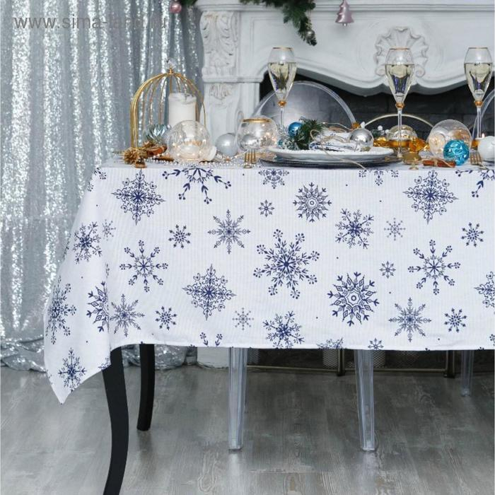 Скатерть "Доляна" Синие снежинки 220х146 +/- 3 см, 100% хлопок, 164 г/м2