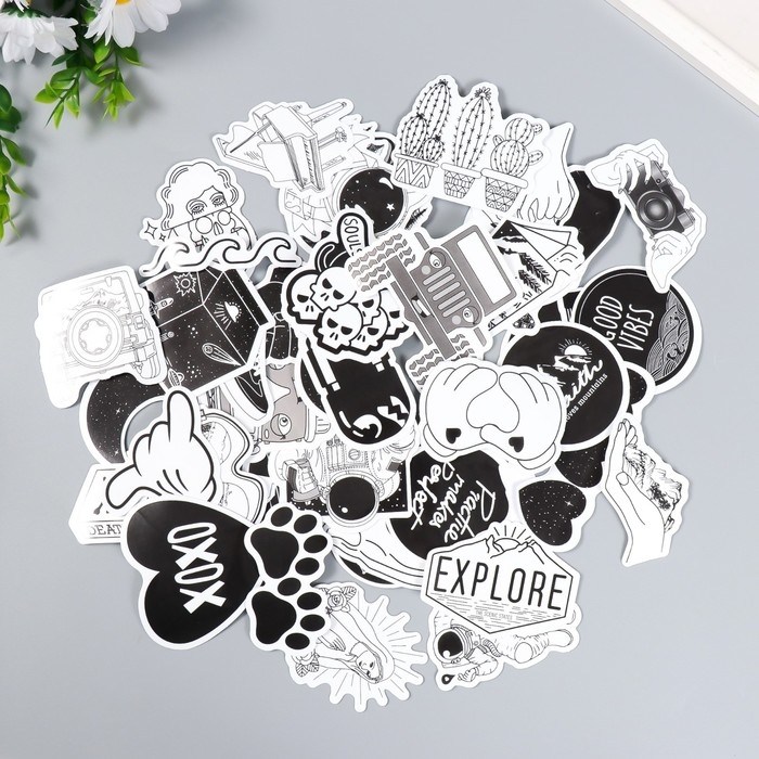 Набор наклеек "Чёрно-белый супермикс" 50 шт 3-8,5 см