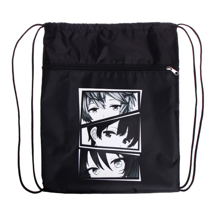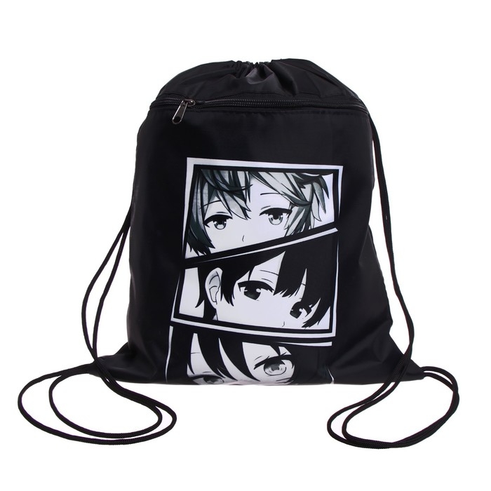 Мешок для обуви с карманом 420 х 340 мм, Calligrata МСО-7С, (мягкий полиэстер, плотность 210D), "Аниме глаза"
