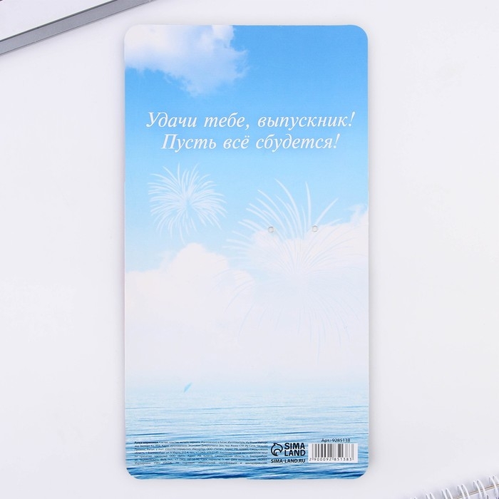 Ручка прикол колокольчик шариковая на открытке на выпускной «Удачи тебе, Выпускник!» синяя паста 0.8 мм