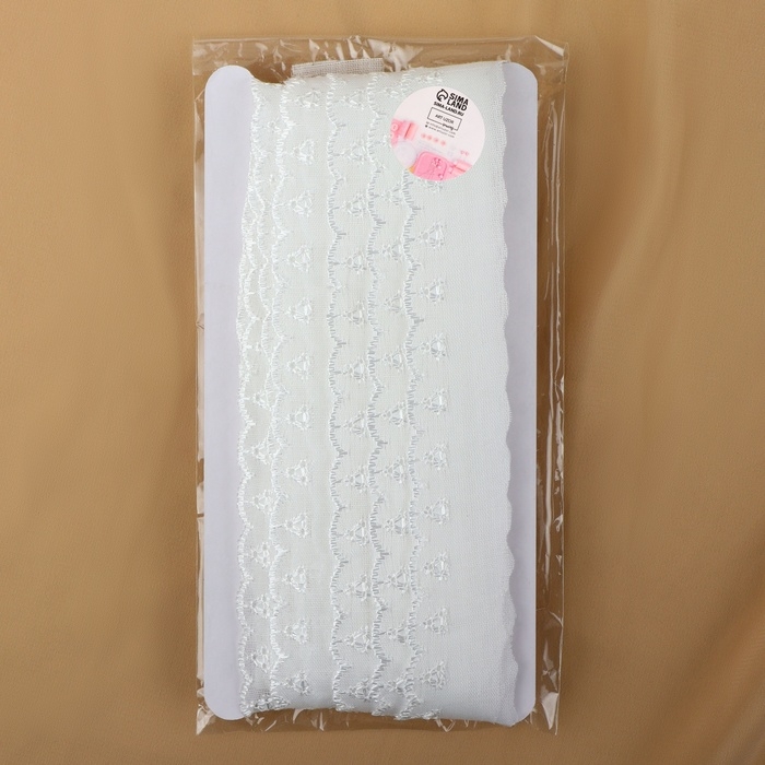 Кружево шитьё, 25 мм × 13 ± 1 м, цвет белый