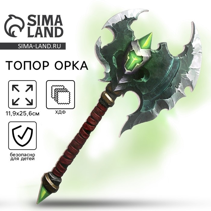 Деревянное оружие, детское сувенирное «Зеленый», топор орка, 11,9 х 25,6 см - это яркое и безопасное оружие для детей!