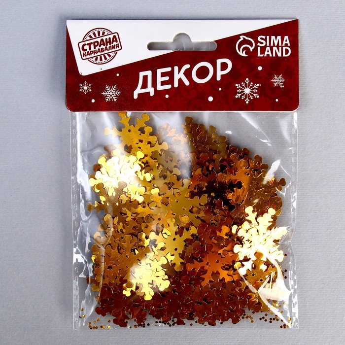Пайетки «Снег» 20 г, цвет золото, 25 мм